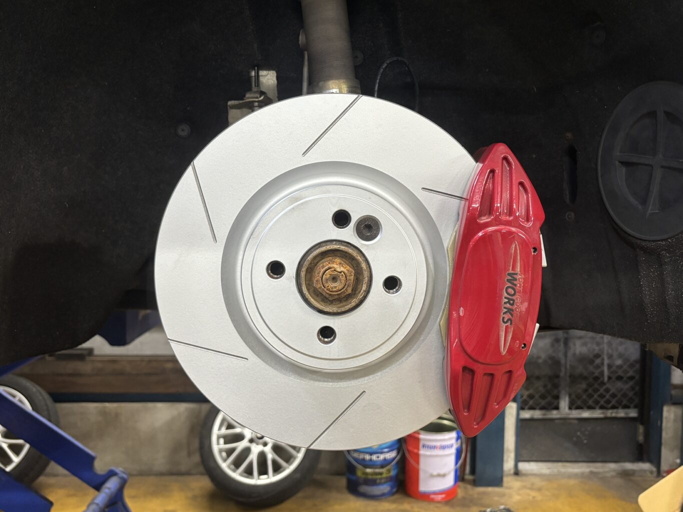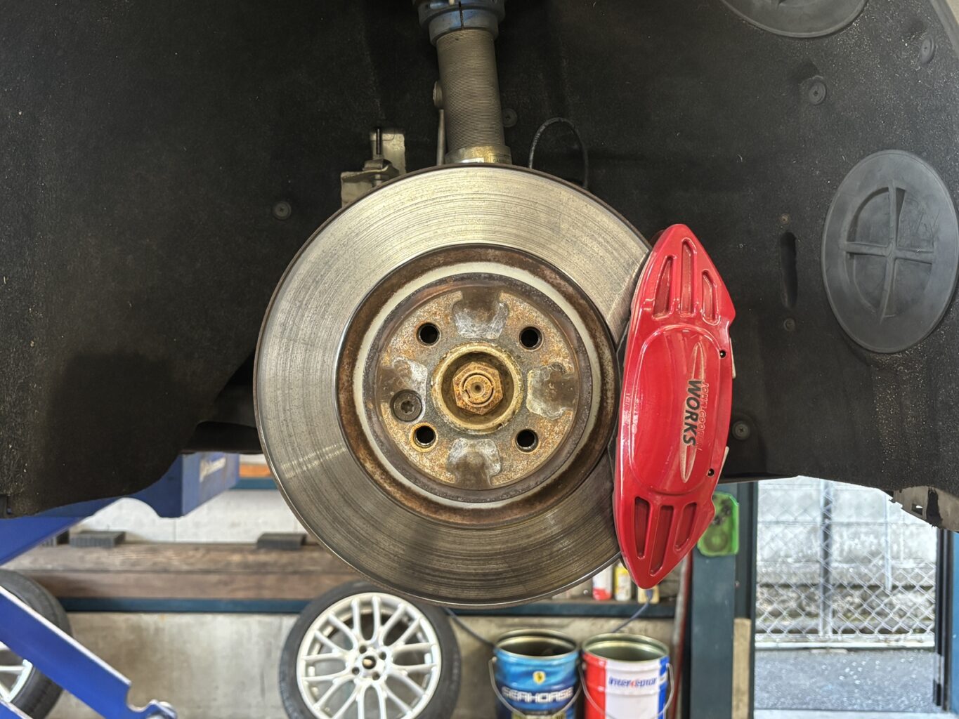 山口県からお越しのM様のR56のディスクローター&ブレーキパッド交換、スペーサーをお取付けいたしました。