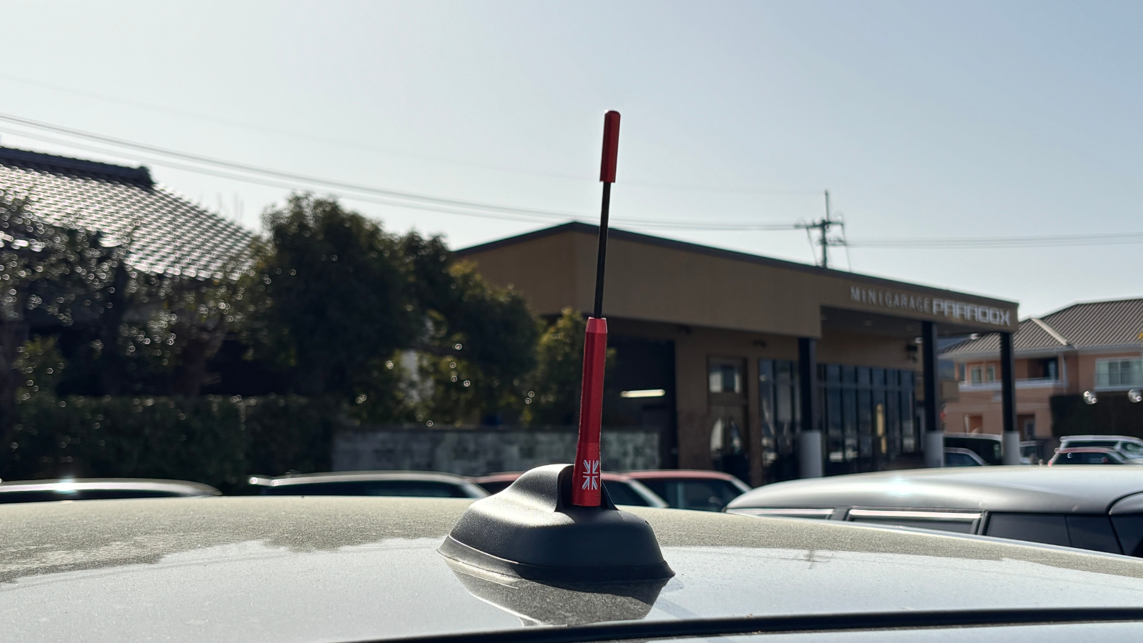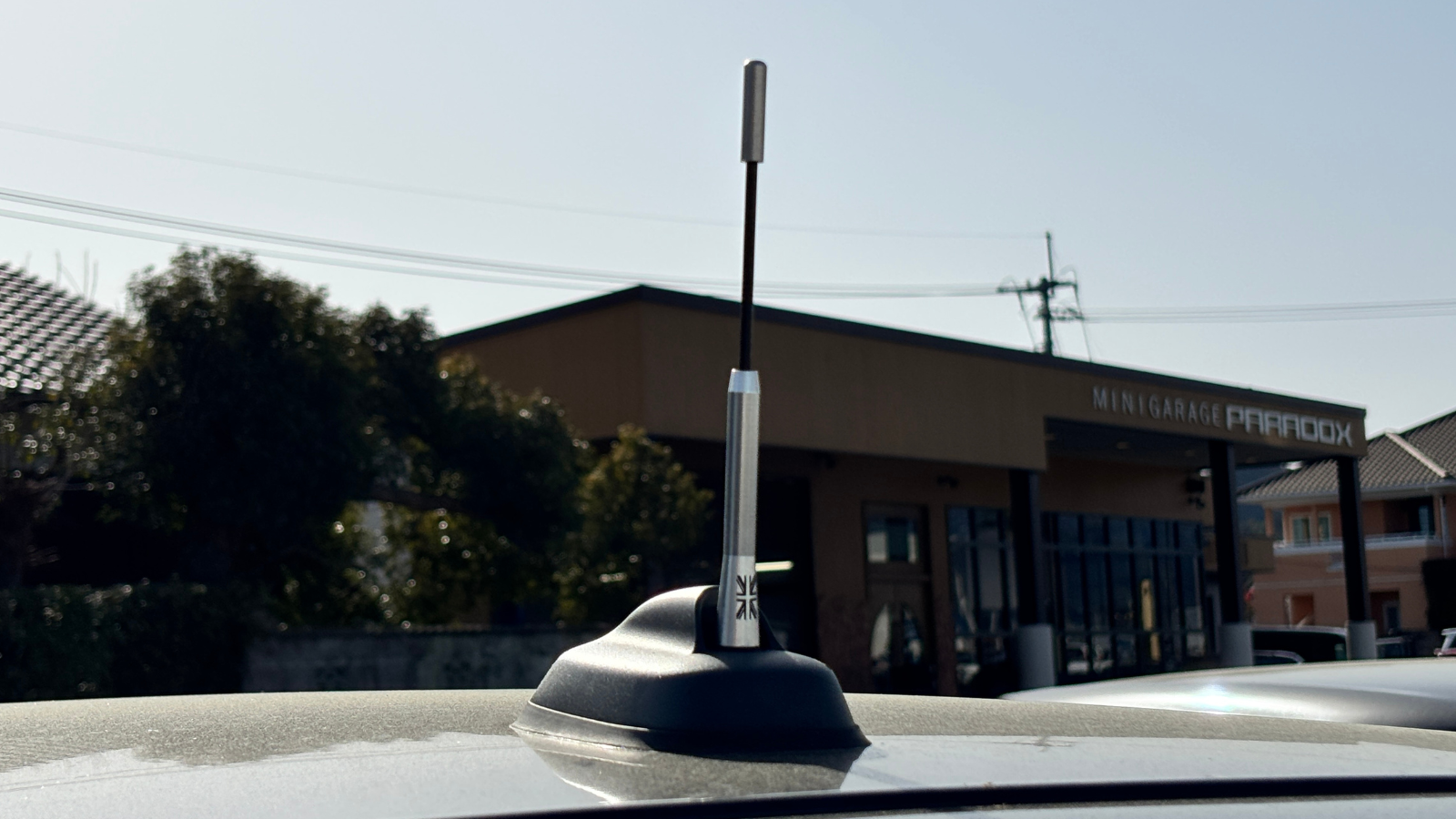 アンテナの根元にはMINIらしさを引き立てるユニオンジャック柄がプリントされています。派手すぎないワンポイントアクセントで後ろ姿に遊び心をプラス。