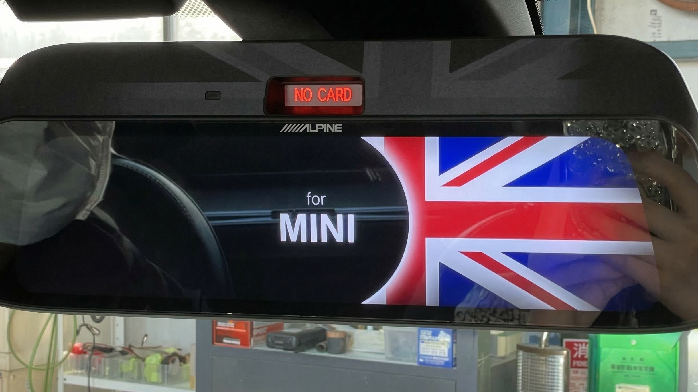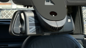 ミラー背面にはユニオンジャックをモチーフにした意匠が施されておりMINIの遊び心ある車内に完璧にマッチします。さらに、エンジン始動時のオープニング動画も愛車のカラーに合わせて設定できるため乗るたびに気分を高めてくれます。