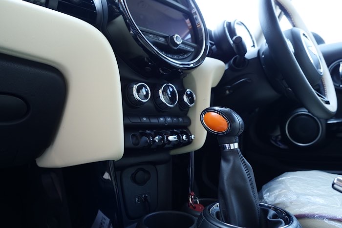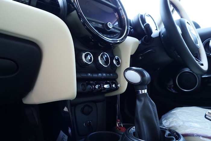 MINIのシフトレバーを見てみると、このように黒いプラスチックが両面にあります。