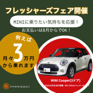 月々3万円からMINIに乗れるパラドックスのフレッシャーズフェア