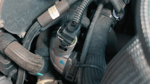 水温センサーはアッパーホースの途中に設けられたジョイントパイプに装着されていましたが、現在部品が変更されておりサーモスタットフランジに装着される設計となっています。よってサーモスタットフランジAssy交換となります。