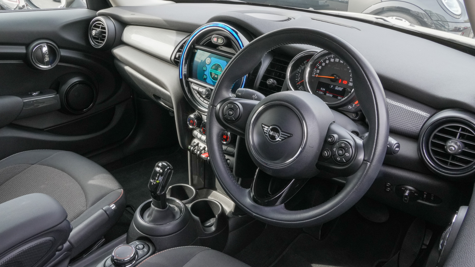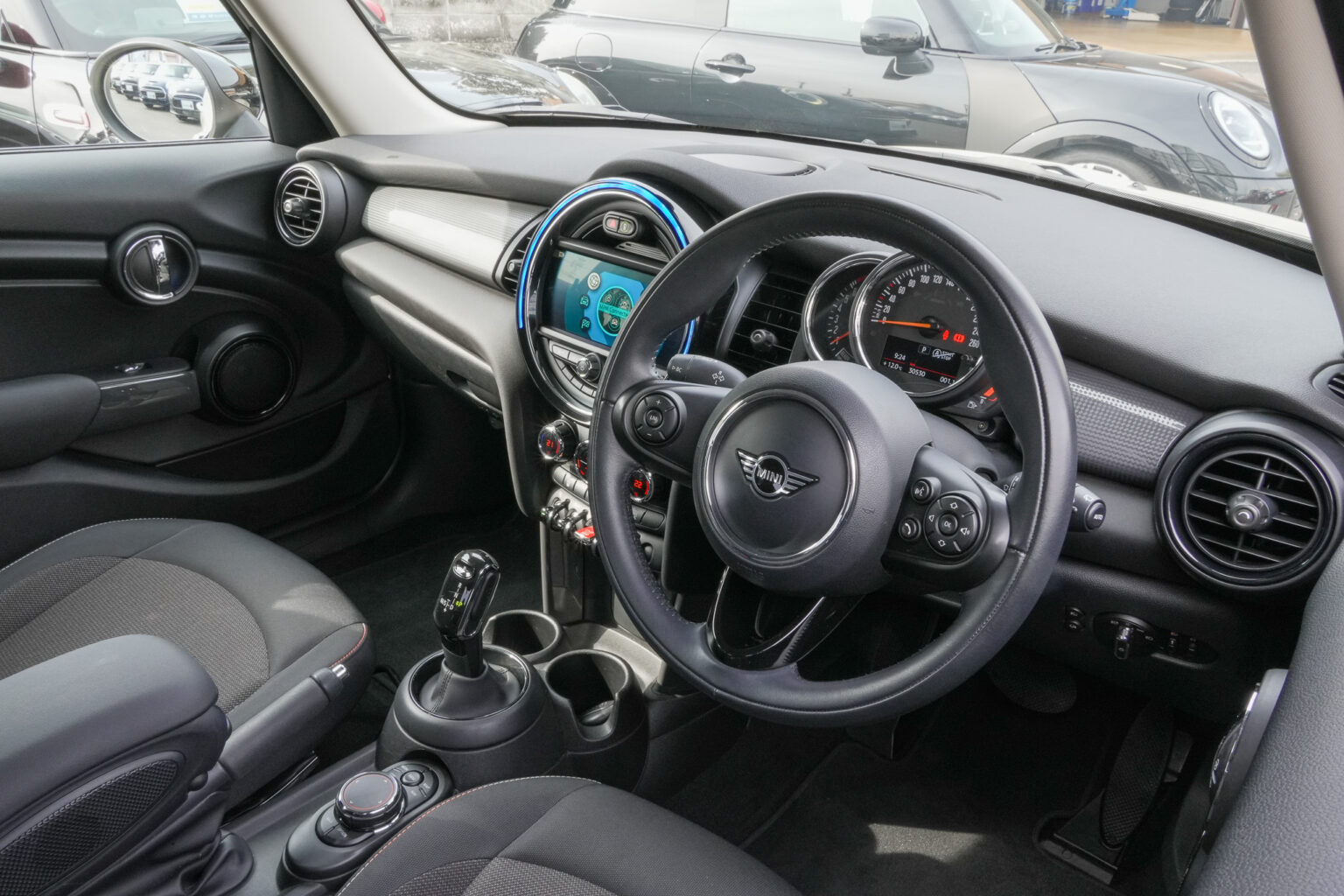 「MINIのデザインがとにかく好き」と仰るK様。実際に在庫車両をご覧いただき実車のドアを開けた瞬間…丸みを帯びたセンターディスプレイやトグルスイッチなど、遊び心溢れるこだわりのインテリアを見て感激されていました!