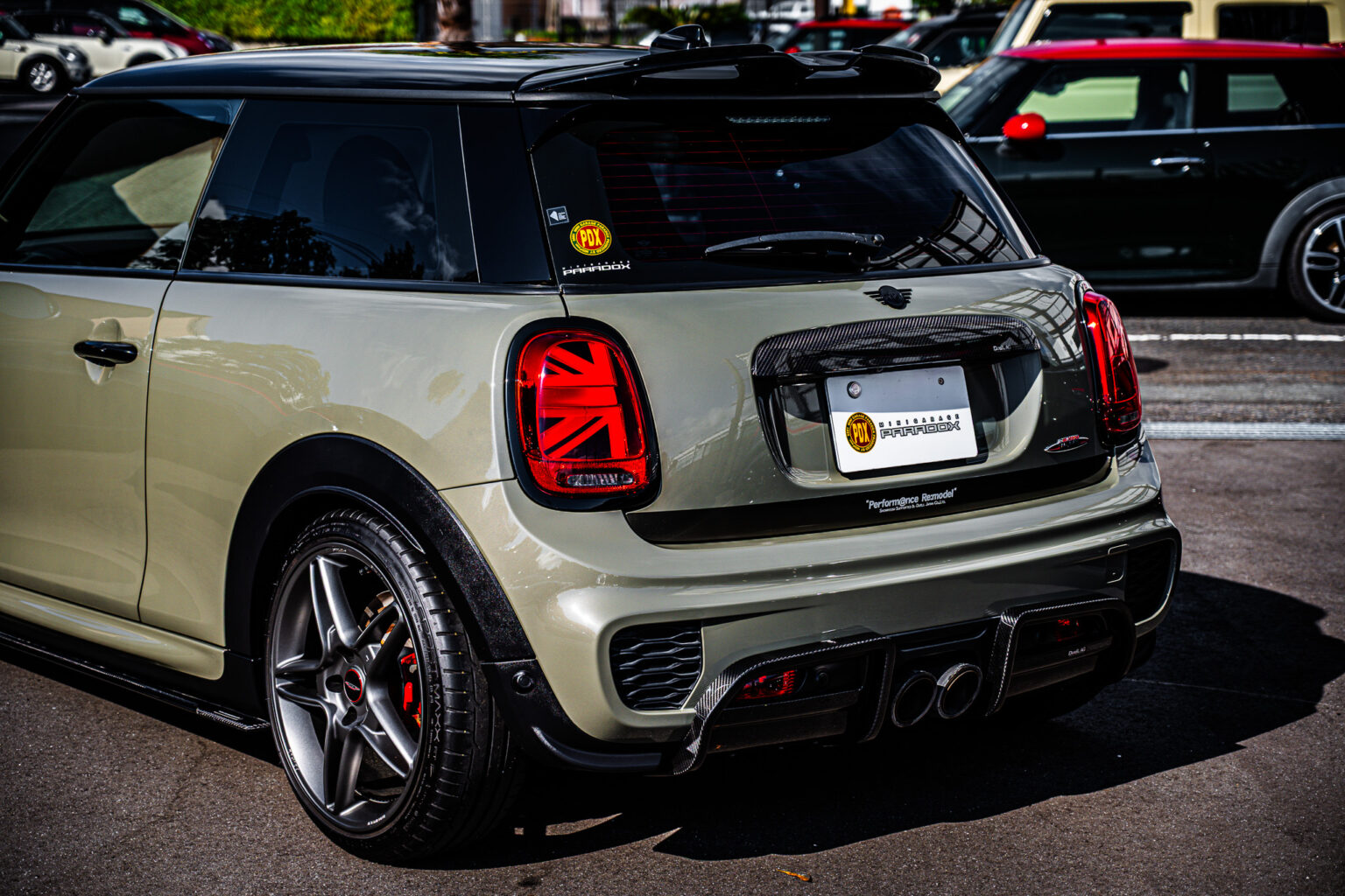 さらにPARADOXオリジナルホイール【PDX-02】を装備。丸みのあるMINIのデザインと調和するよう何度も何度も微調整を重ねて仕上げた自信作!