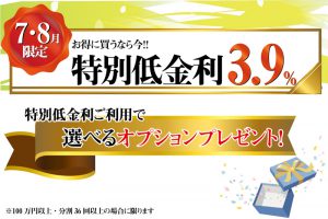 特別低金利3.9%をご利用いただいたお客様全員に選べるオプションをプレゼント!